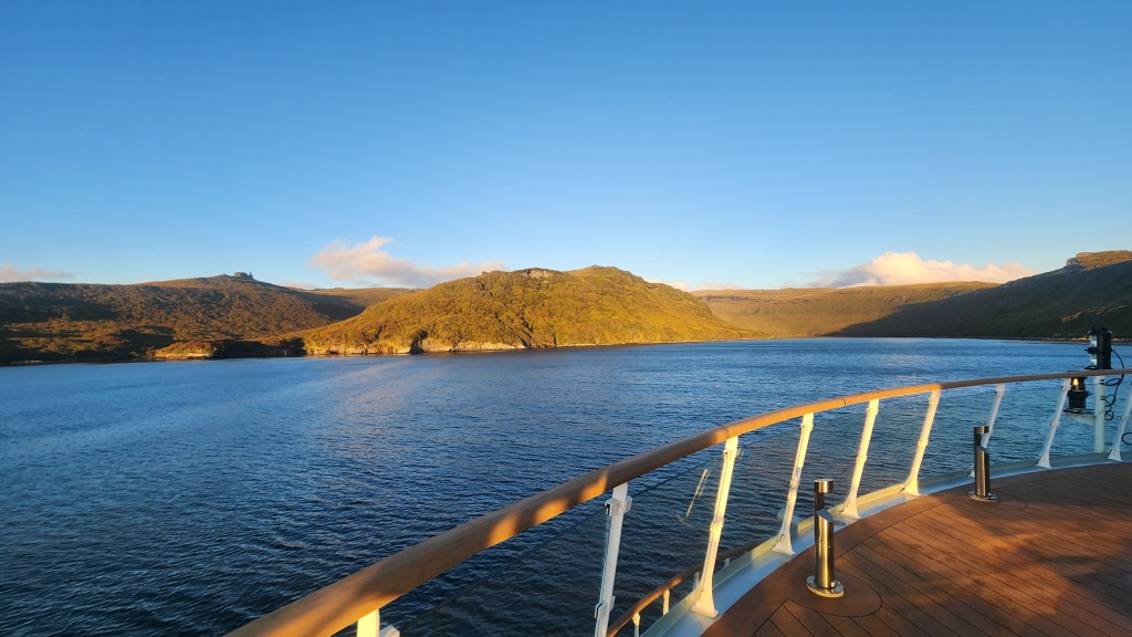 This evening we are upping anchor and heading for Cameron Island. I’m enjoying the observation lounge on the top deck and am about halfway through the 500 page history of Antarctica given me by Susan at Christmas.