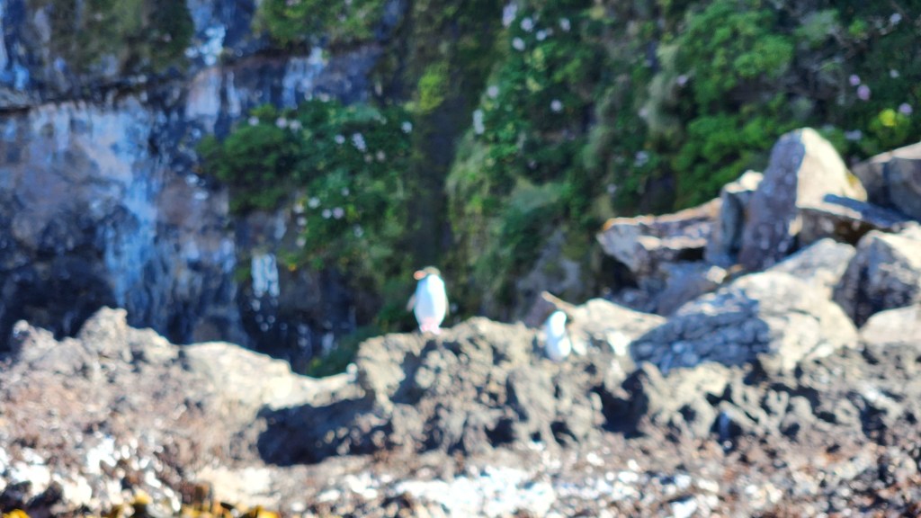 Today we explored Musgrave Inlet on Auckland Island in Zodiac boats. Best in show were the rock hopper penguins, so called because these tiny birds hop about on the rocks by the shore, occasionally swimming out for a feed.