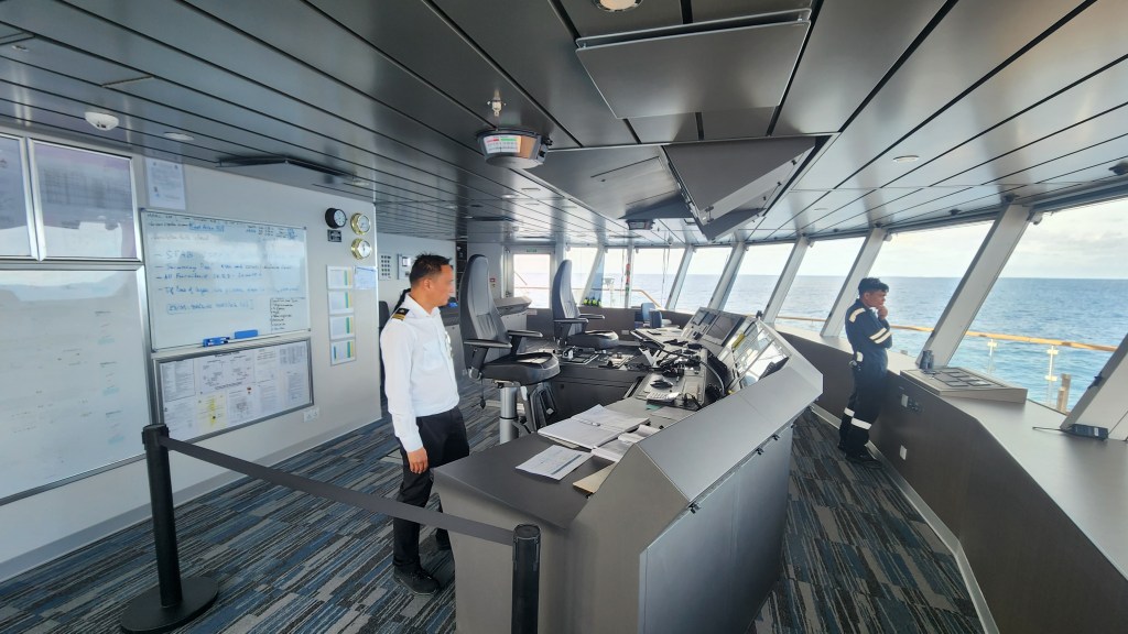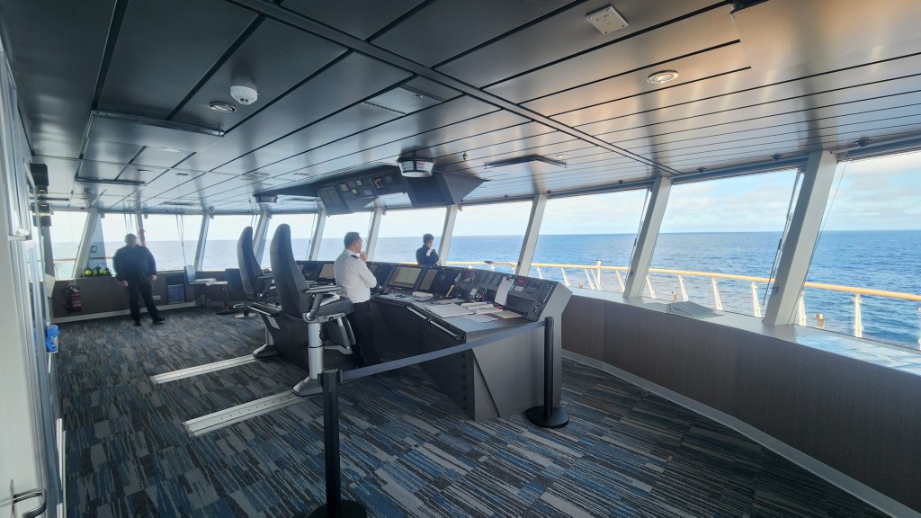 Passengers are invited to stop by the bridge, and I found it an island of calm tranquility high above the waves.