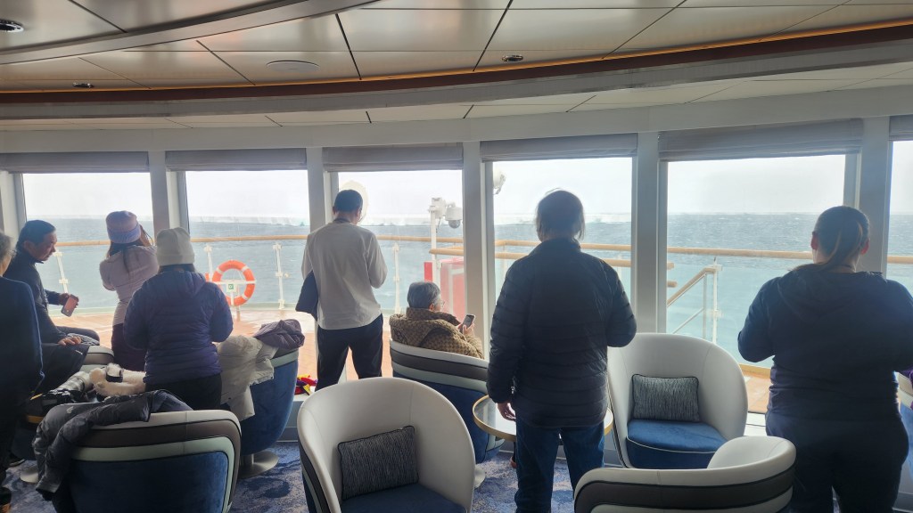 By mid afternoon winds had freshened to 70, the captain closed the outside decks and the ship began to buck and roll. I wouldn’t have lasted 20 minutes in this on the Alison P.