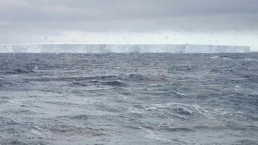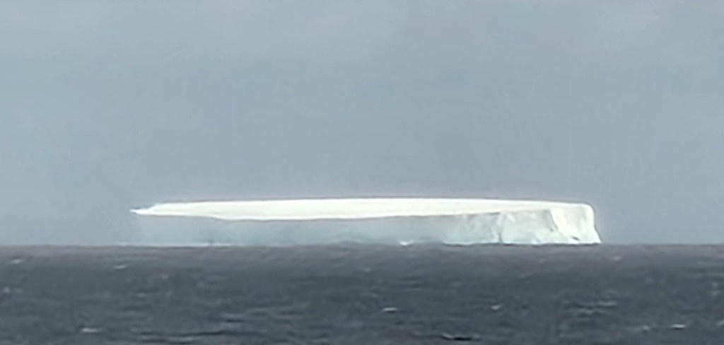 Seas calmed a bit by lunchtime. We began retracing our path through the pack ice and again marveled at the giant icebergs that had seceded from Ross’s Ice Shelf.