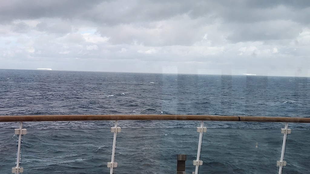 With winds steady at 50 or so the seas really built up last night. Down on the lowest deck in “steerage,” our cabin stewards swung the metal cover shut over our lone porthole. We were advised this step needed to be taken as a precaution against a powerful wave smashing the thick, and I mean thick, glass through we we had been peering now and then.