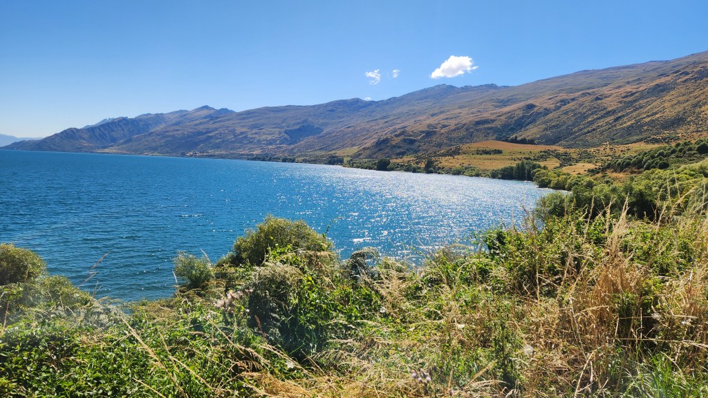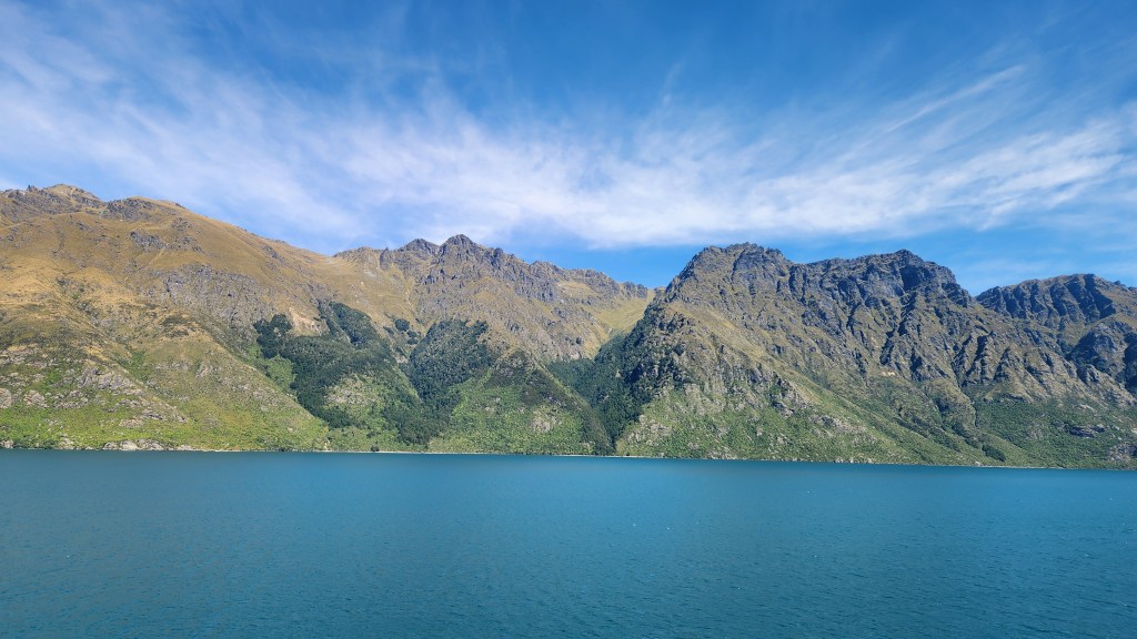 we breakfasted, packed up and hit the road around 10:30 for the 2 hour drive up to Queenstown marveling as always at the roadside scenery.