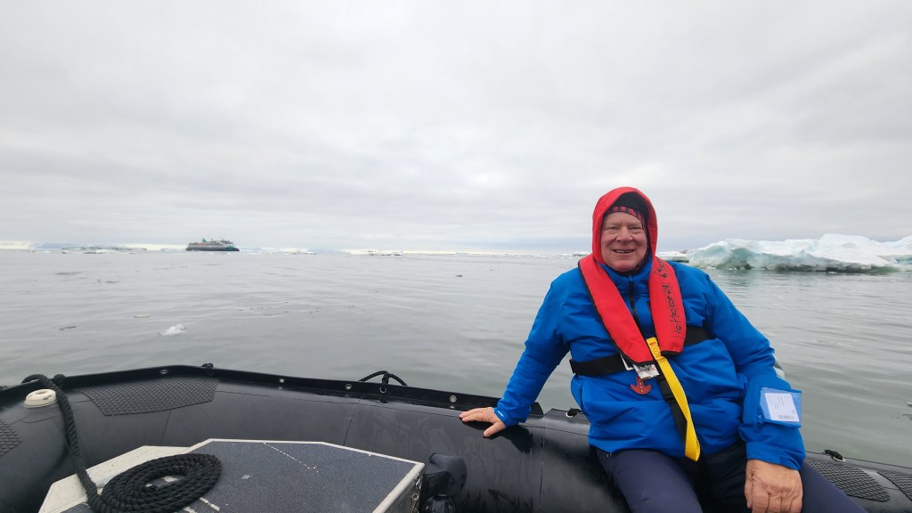 They gathered us together this morning and explained that the ship’s captain considered it unsafe to try to proceed up the west shore of the Sound as we would be looking at 70 mph winds after which we would have to pass through the thickening pack ice. The ship cannot deploy its stabilizers in icy conditions,so the pitching and rolling would have been really something.